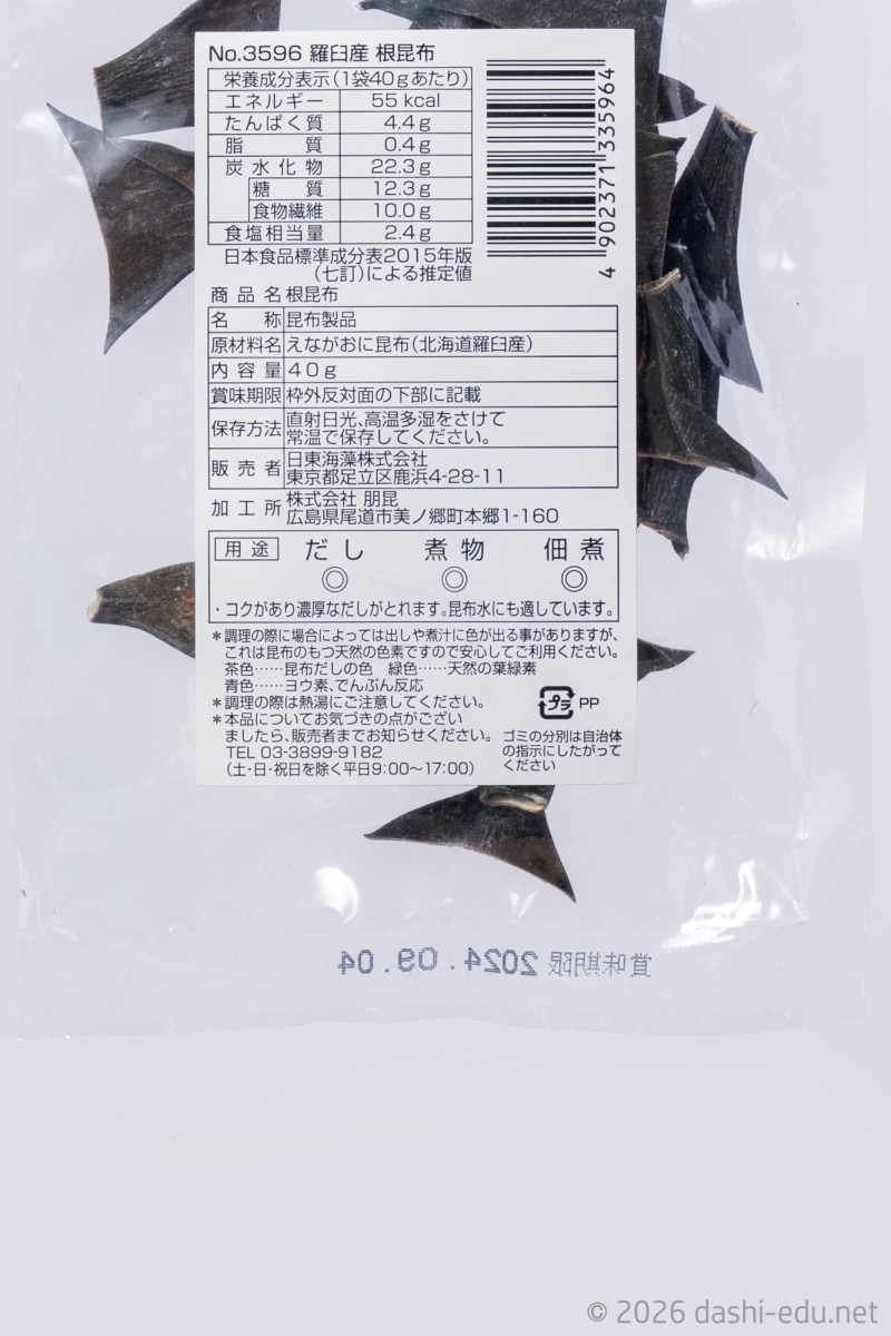 幅広で薄く、やわらかな羅臼昆布は、刺身の昆布締めや、水に浸して使「昆布水」などの水だしに向きます。