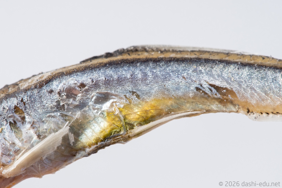 煮干しには製造工程で塩分が加わるため、煮干しだしはイワシ特有の香りとうま味に加え、ほんのりとした塩味も感じられます。